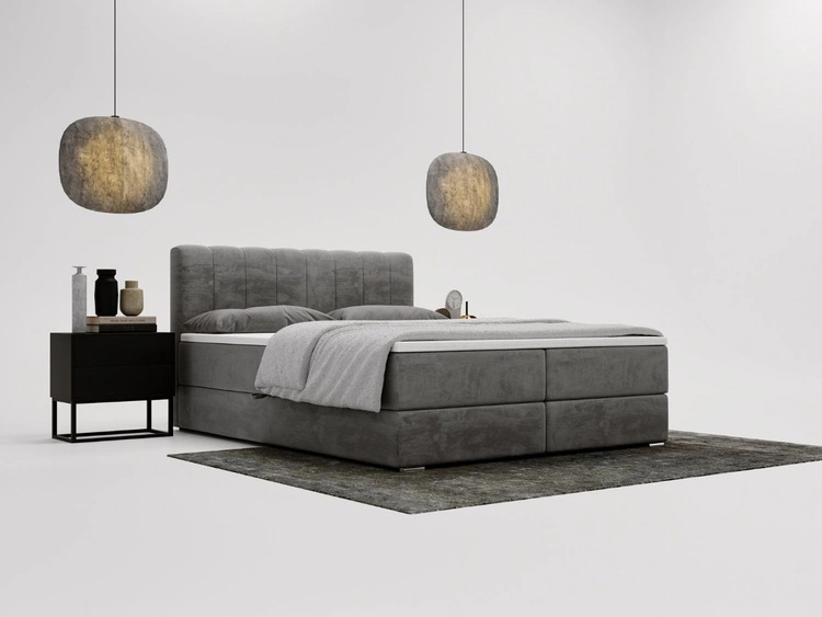 Łóżko kontynentalne z pojemnikiem na pościel 160x200 Campi Ciemnoszare