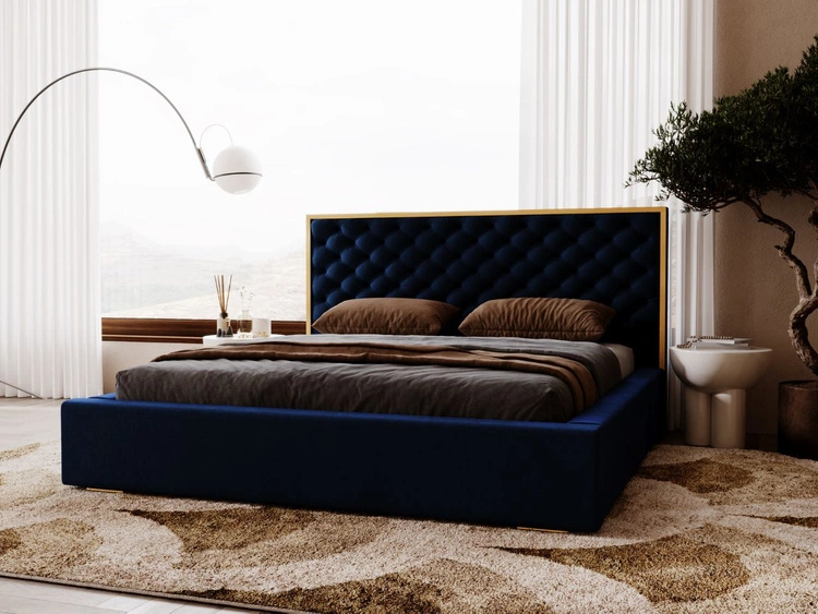 Łóżko tapicerowane z pojemnikiem i stelażem 180x200 Salento granatowe