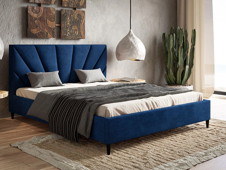 Łóżko tapicerowane ze stelażem 160x200 Tril Ciemny niebieski