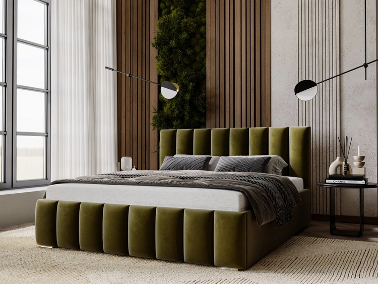 Łóżko tapicerowane z pojemnikiem i stelażem 200x200 Valencia Zielony