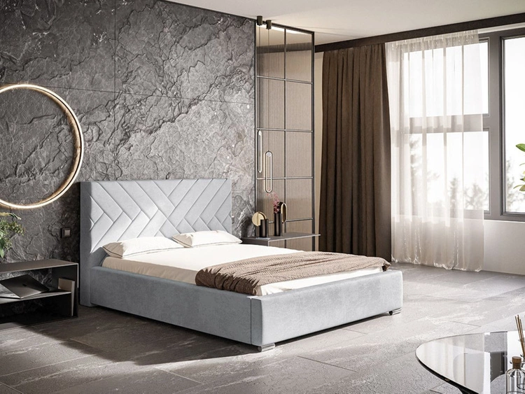Łóżko tapicerowane z pojemnikiem i stelażem 140x200 Lido jasny szary