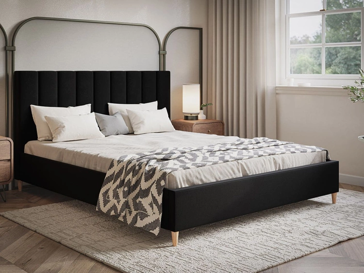 Łóżko tapicerowane ze stelażem 160x200 Snazi Czarne