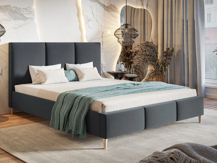 Łóżko tapicerowane ze stelażem 160x200 Trio Ciemny szary