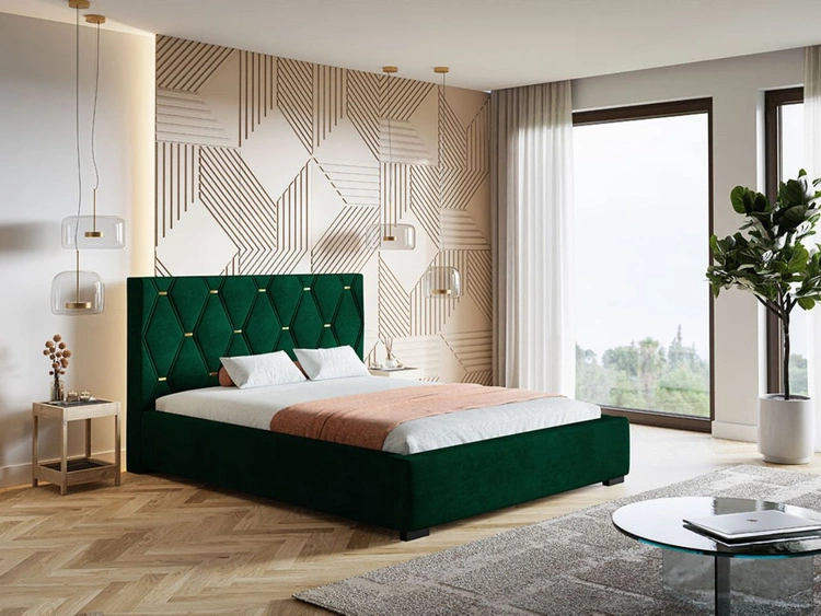 Łóżko tapicerowane z pojemnikiem i stelażem 160x200 Toscania Zielone