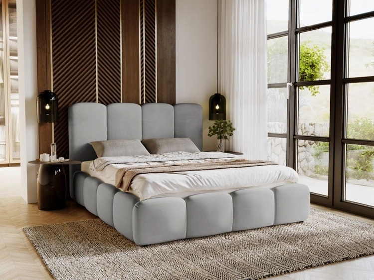 Łóżko tapicerowane z pojemnikiem i stelażem 200x200 Bliss Szare