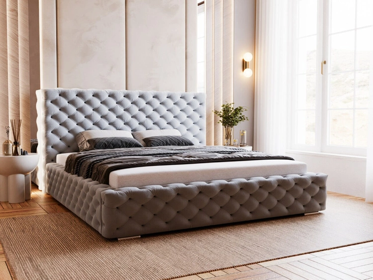 Ilość produktów: 1457Łóżko tapicerowane z pojemnikiem i stelażem 200x200 Astra Szary