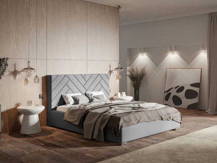 Łóżko tapicerowane z pojemnikiem i stelażem 160x200 Toreto Szare