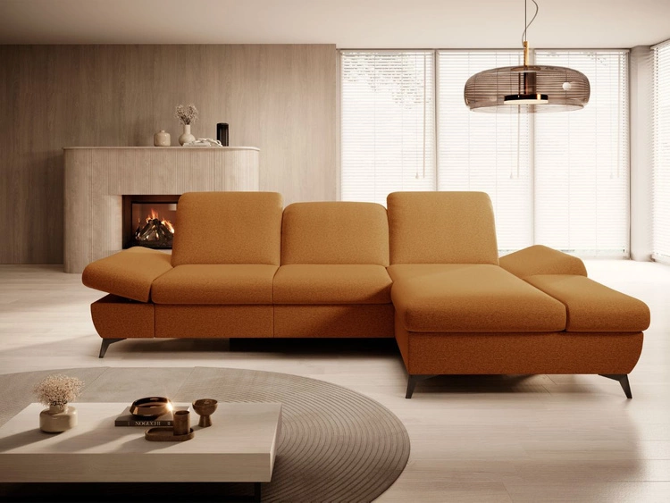 Narożnik L Prawy z funkcją spania i pojemnikiem Limon Pomarańczowy