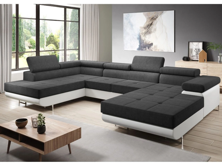 Narożnik U lewy z funkcją spania i pojemnikiem Solam U Czarny, Biały
