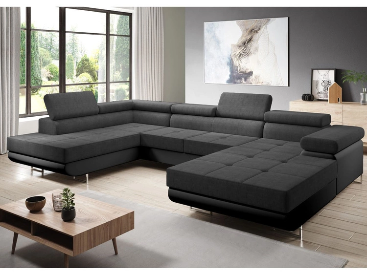 Narożnik U lewy z funkcją spania i pojemnikiem Solam U Czarny