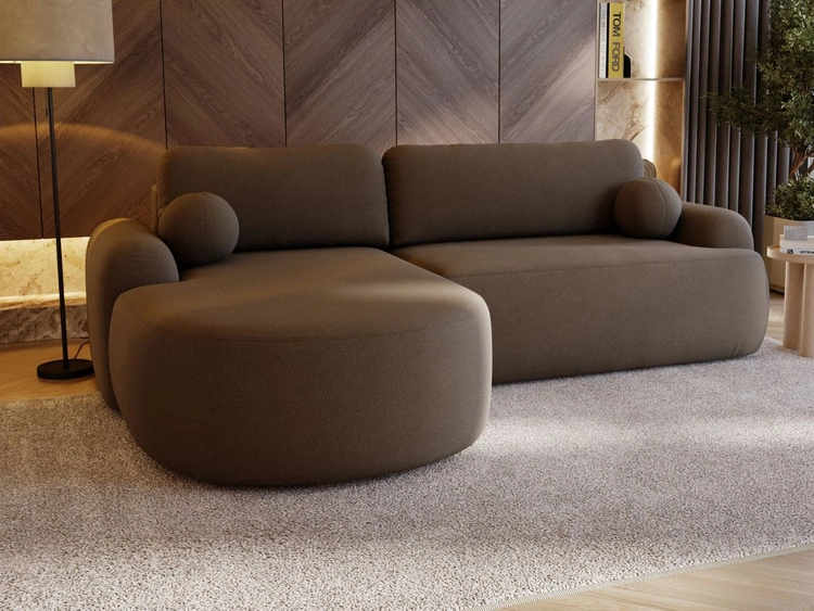 Narożnik L Lewy z funkcją spania i pojemnikiem Aurio Brązowy
