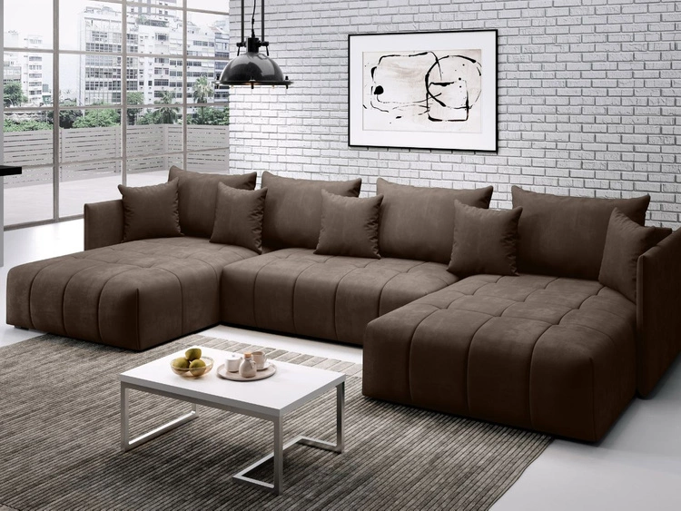 Narożnik U z funkcją spania i pojemnikiem Decor U Brązowy