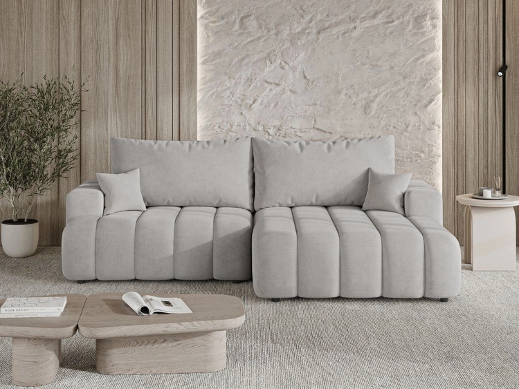 Narożnik L Prawy z funkcją spania i pojemnikiem Caleo Jasnoszary