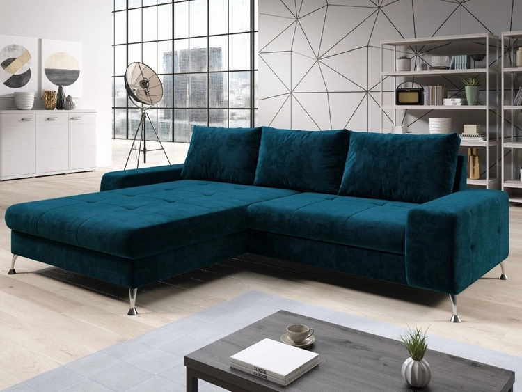 Narożnik L Lewy z funkcją spania i pojemnikiem Tonny Ciemny niebieski