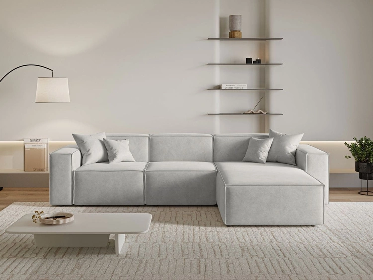 Narożnik L Prawy z funkcją spania i pojemnikiem Caleo Jasnoszary