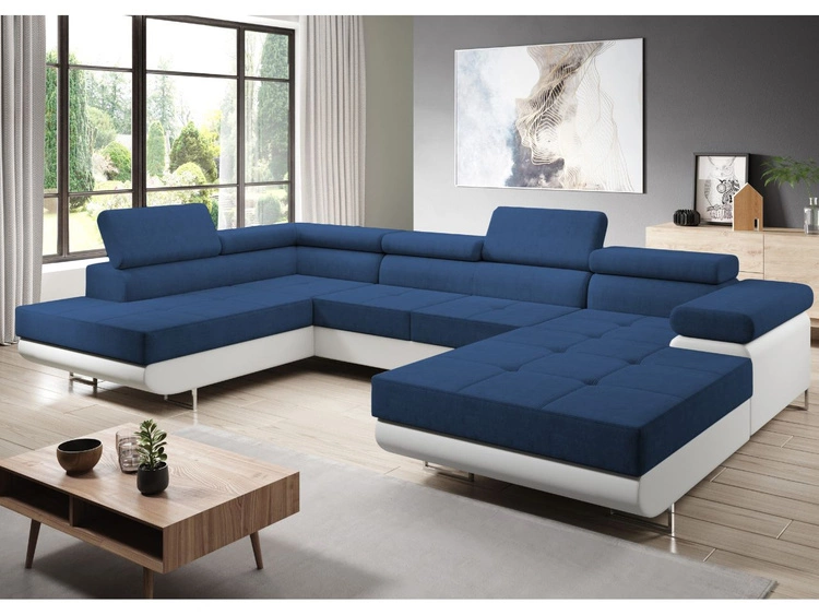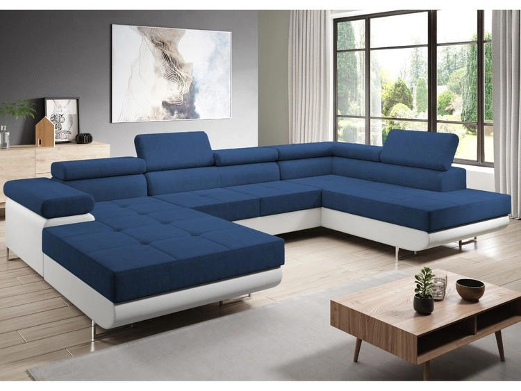 Narożnik U lewy z funkcją spania i pojemnikiem Solam U Granatowy, Biały