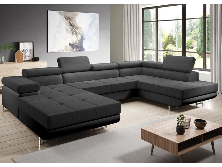 Narożnik U prawy z funkcją spania Moni U Czarny