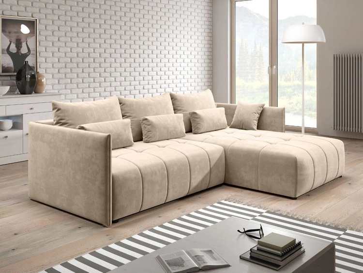 Narożnik L uniwersalny z funkcją spania i pojemnikiem Scala Beżowy