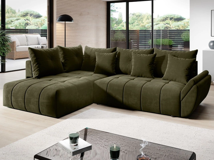 Narożnik L Prawy z funkcją spania i pojemnikiem Tonny Zielony