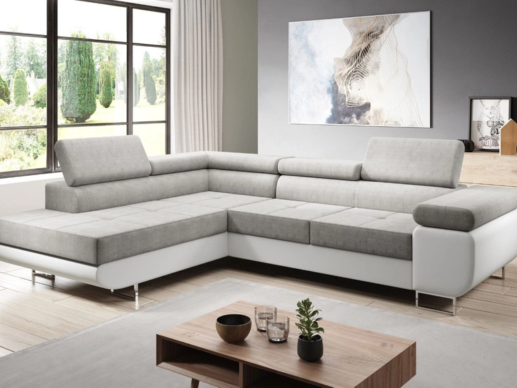 Narożnik L uniwersalny z funkcją spania i pojemnikiem Sonia Szary, Biały