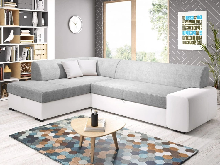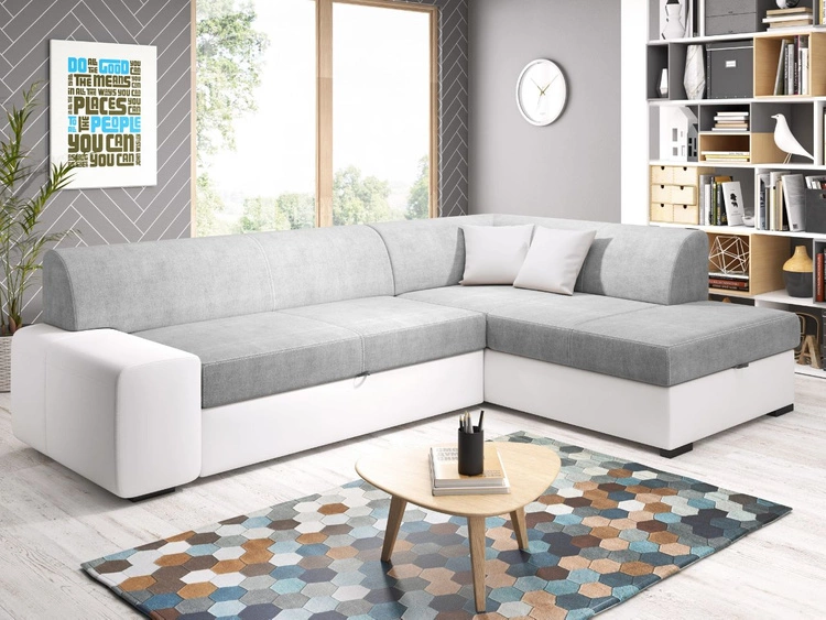 Narożnik L uniwersalny z funkcją spania i pojemnikiem Sonia Szary, Biały