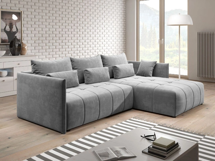Narożnik L prawy z funkcją spania i pojemnikiem Lana Szary