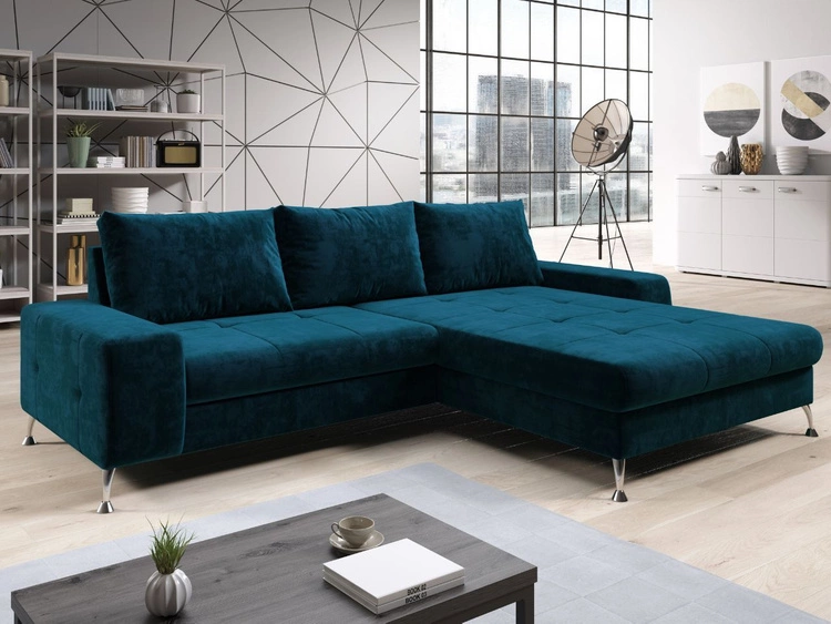 Narożnik L Prawy z funkcją spania i pojemnikiem Tonny Ciemny niebieski