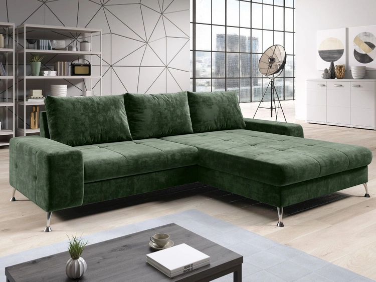 Narożnik L Prawy z funkcją spania i pojemnikiem Tonny Zielony