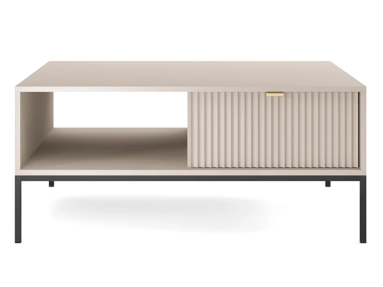 Stolik kawowy z szufladą na czarnych nóżkach Amor Beż piaskowy