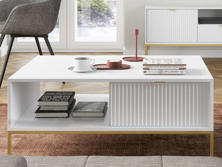 Ilość produktów: 40Stolik kawowy z szufladą Amber biały na złotych nogach