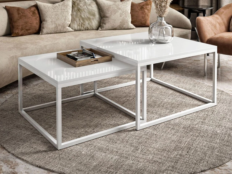 Stolik kawowy na czarnym stelażu Asumi Biały Połysk 40x42