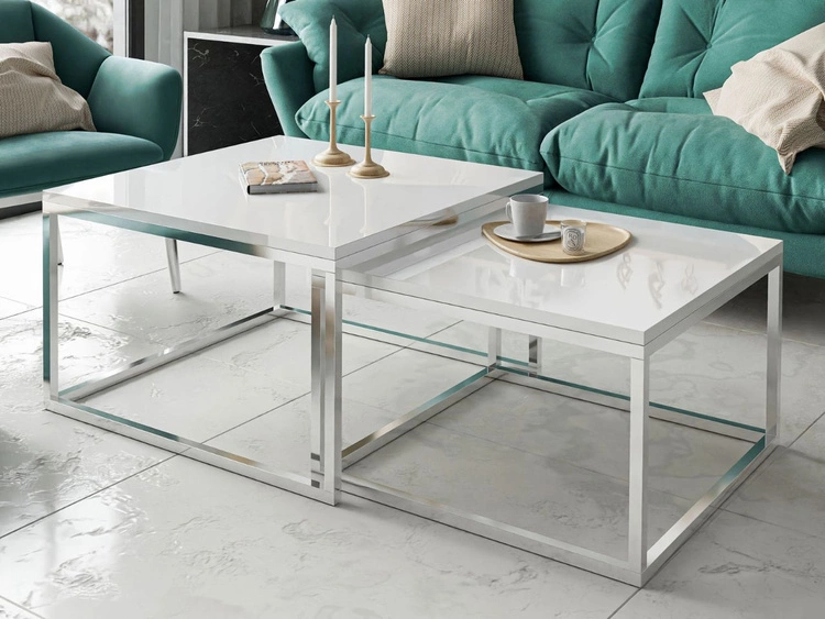 Stolik kawowy na chromowanym stelażu Asumi Biały Połysk 40x46