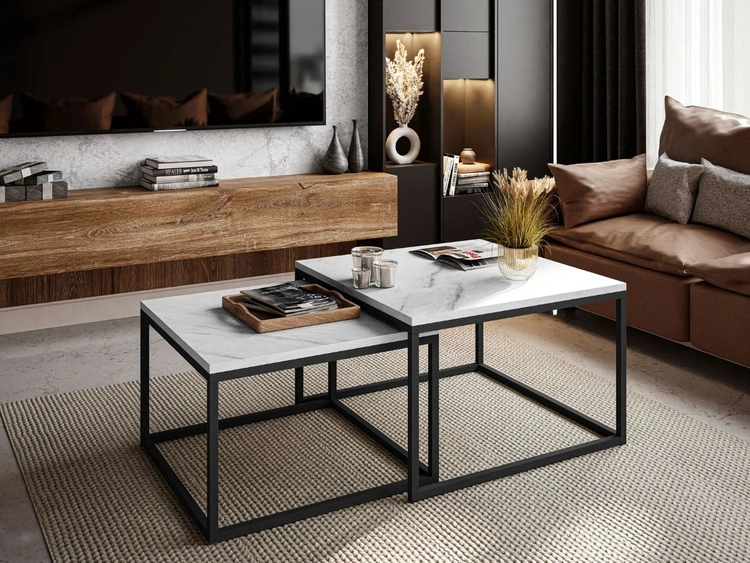Stolik kawowy na czarnym metalowym stelażu z imitacją białego marmuru Asumi 40x46