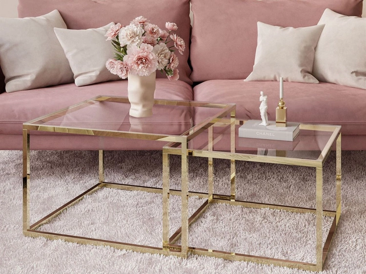 Stolik kawowy na złotym stelażu z przezroczystym blatem Asumi 35x41