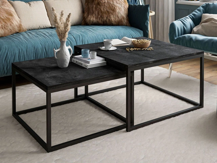 Stolik kawowy na czarnym metalowym stelażu z czarnym blatem Asumi 40x46