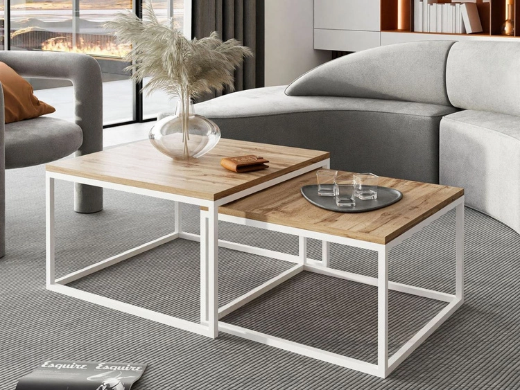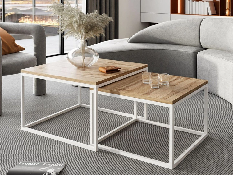 Stolik kawowy na białym stelażu Asumi Dąb Wotan 40x46