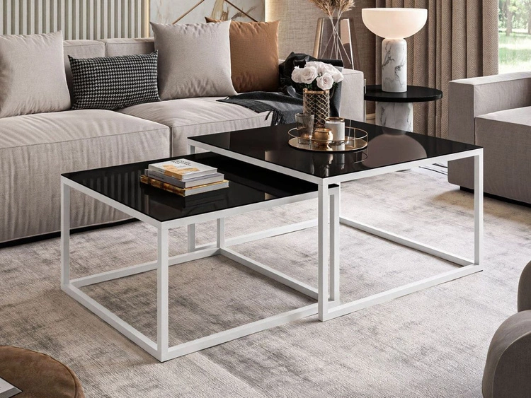 Stolik kawowy na białym stelażu z szklanym blatem Asumi Czarny 35x41