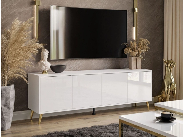 Szafka RTV pod telewizor z drzwiczkami na złotych nogach Vivance Biały połysk