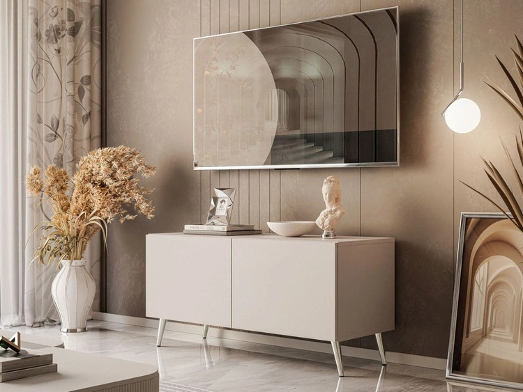 Szafka RTV pod telewizor z drzwiczkami na srebrnych nóżkach 100 cm Nodoo Kaszmir