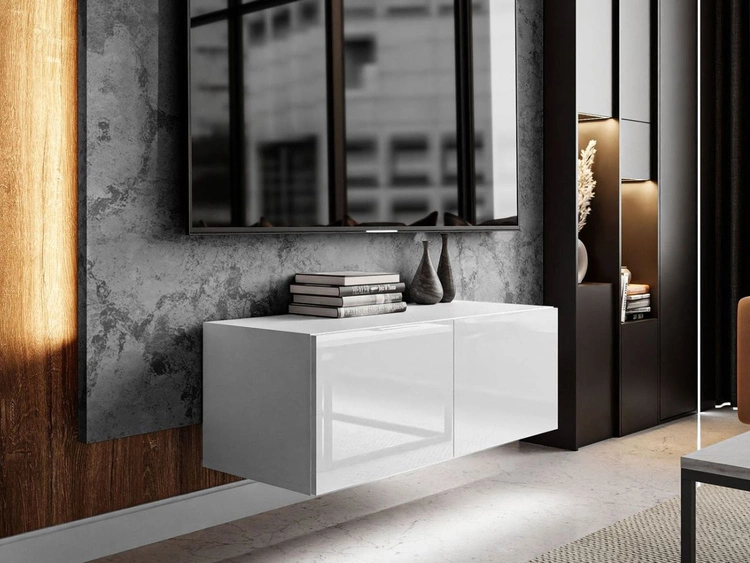 Wisząca szafka RTV pod telewizor z drzwiczkami i oświetleniem LED 100 cm Nodoo Biały połysk