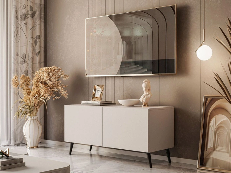 Szafka RTV pod telewizor z drzwiczkami na czarnych nóżkach 100 cm Nodoo Kaszmir