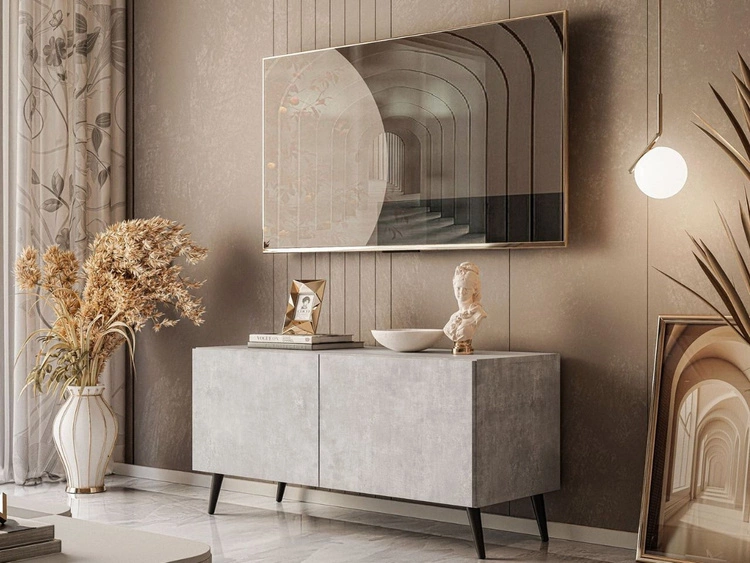 Ilość produktów: 112Szafka RTV pod telewizor z drzwiczkami na czarnych nóżkach 100 cm Nodoo Beton