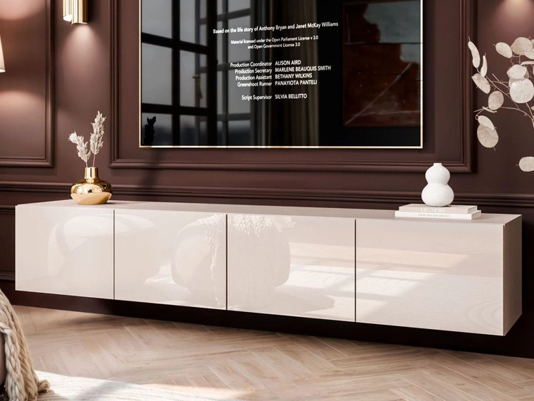 Szafka RTV wisząca 180 cm do salonu z oświetleniem LED Aurelie Kaszmir połysk