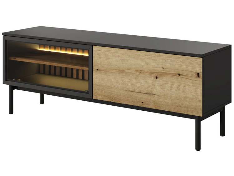 Szafka RTV 90 cm z oświetleniem LED i czarnymi metalowymi nóżkami Aurelie Dąb Artisan