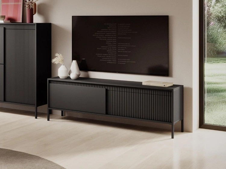 Szafka pod telewizor z szufladami i drzwiczkami Melody Czarna
