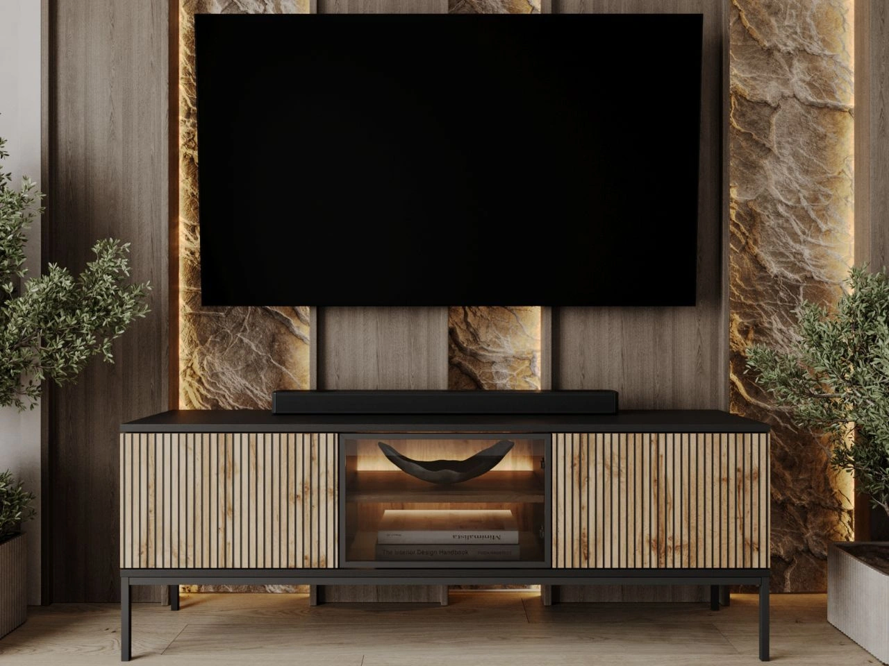 Szafka RTV dwudrzwiowa na czarnych nóżkach 175 cm z oświetleniem LED Sorelle Czarny mat