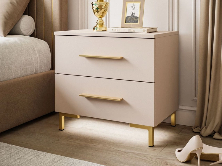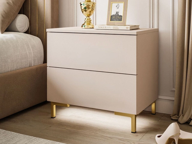 Stolik nocny z dwoma szufladami na złotych nóżkach Nuveo Kaszmir