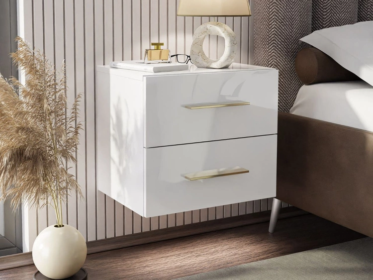 Podwieszany stolik nocny z dwoma szufladami Nuveo Lux Biały połysk