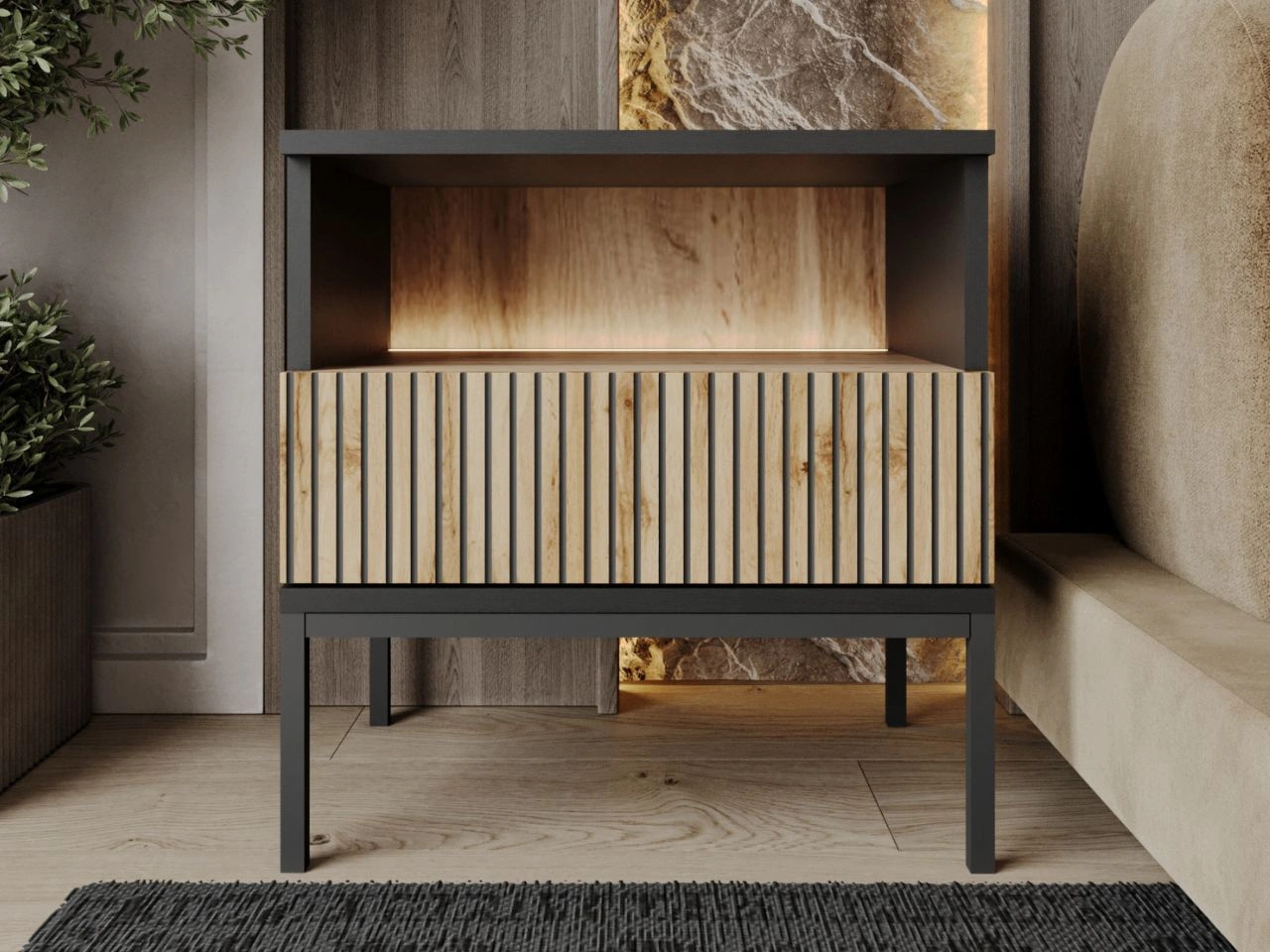 Stolik nocny z szufladą Fascino Dąb Cremona, czarny