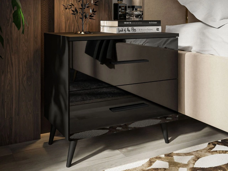 Stolik nocny z szufladami na czarnych nogach Nuveo Czarny połysk